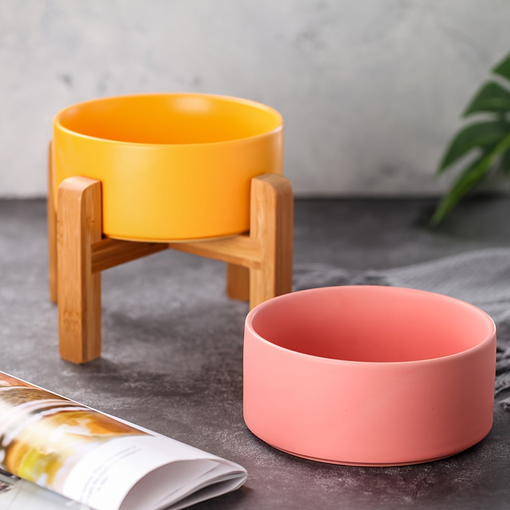 Cuenco Elevado de Cerámica para Mascotas con Soporte de Madera