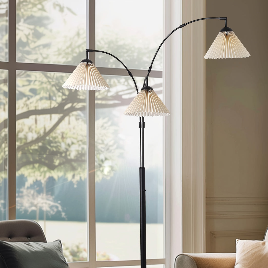 Lámpara de Pie con Arcos Giratorios y Pantallas de Lino