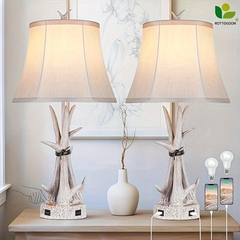 Lámparas de Mesa con Puertos USB, Estilo Rústico (Blanco)