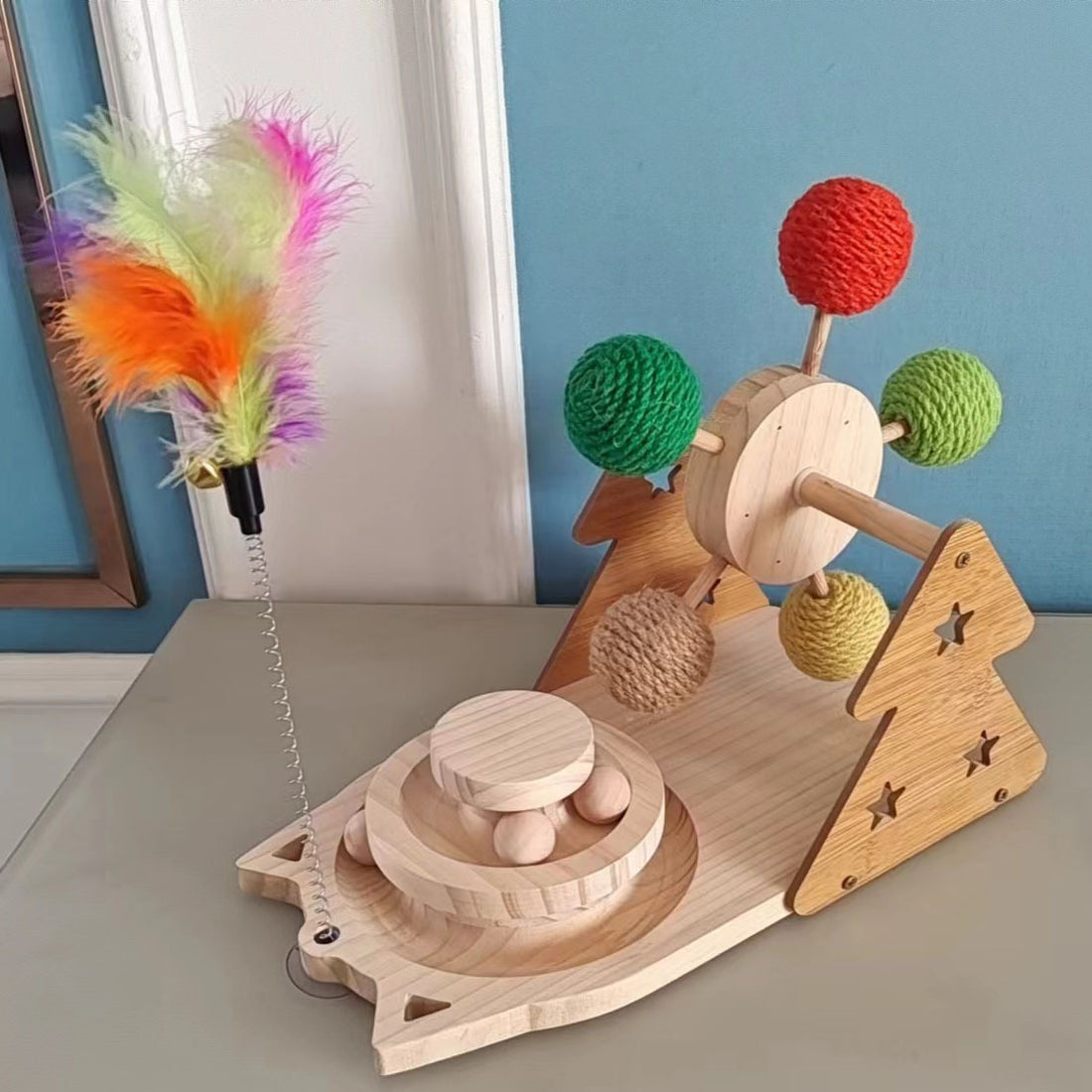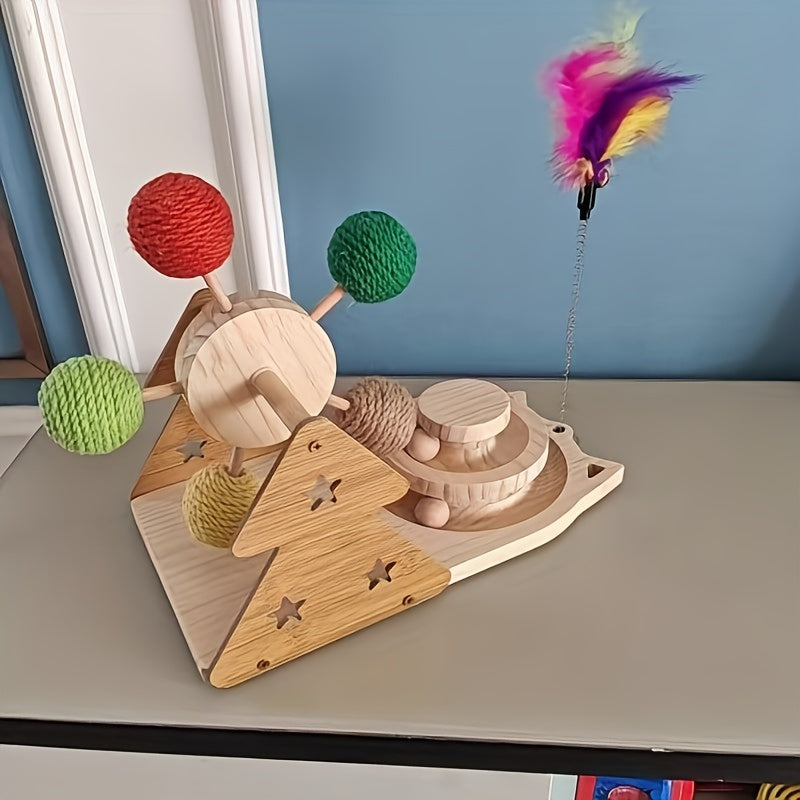 Juguete Interactivo de Madera para Gatos con Bolas de Sisal y Plumas