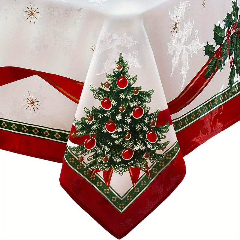 Decora tu mesa con este mantel navideño de poliéster. Su diseño elegante y funcionalidad lavable lo convierten en el complemento perfecto para tus cenas festivas.