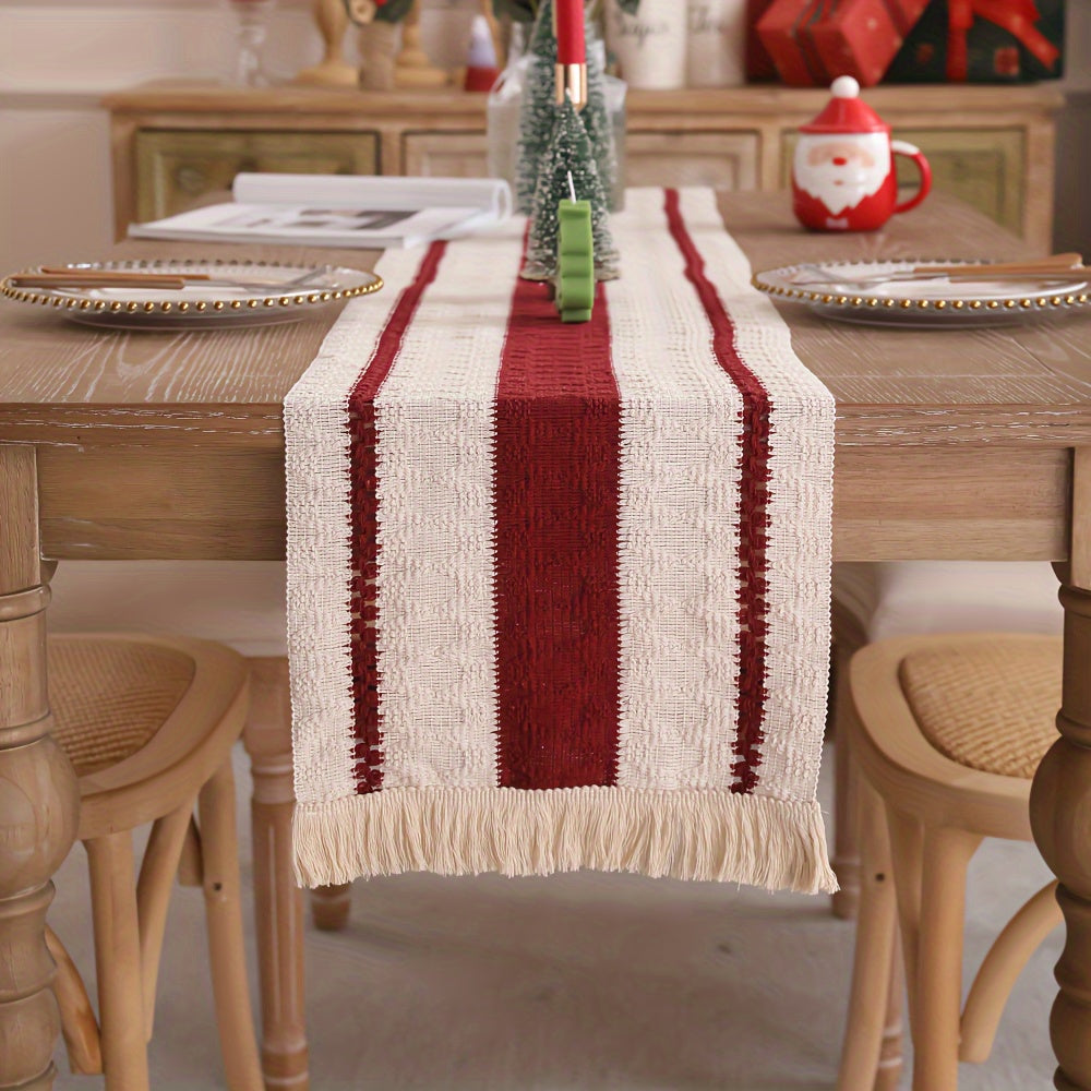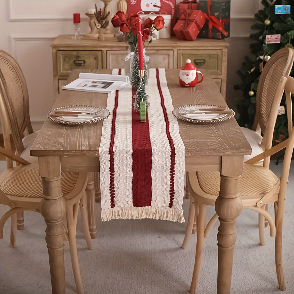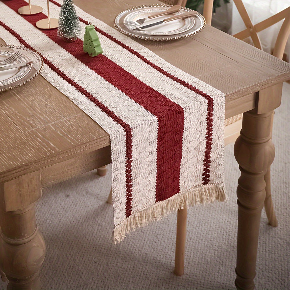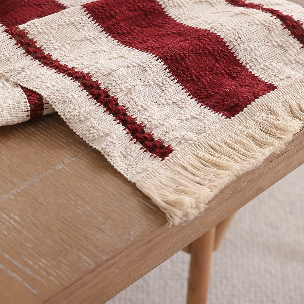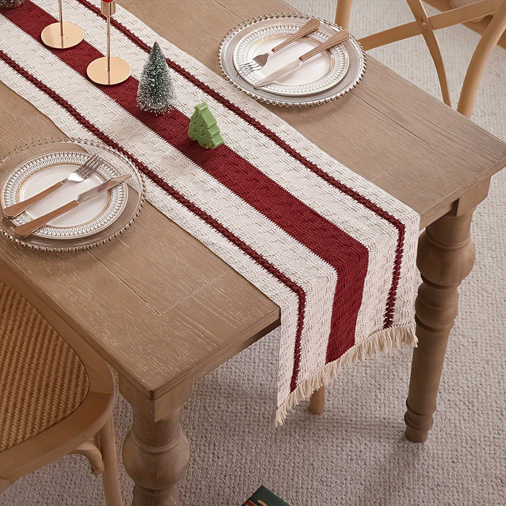 Camino de Mesa Rústico de Algodón-Lino con Borlas, Rojo Oscuro