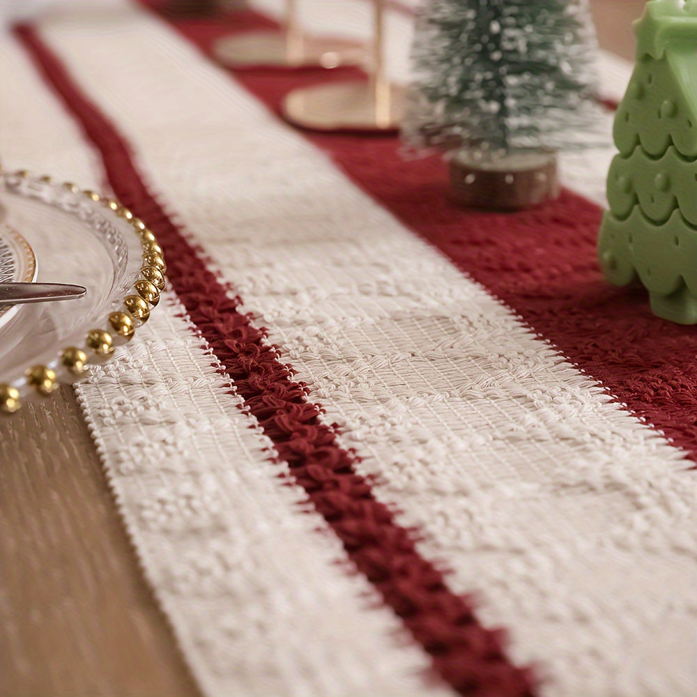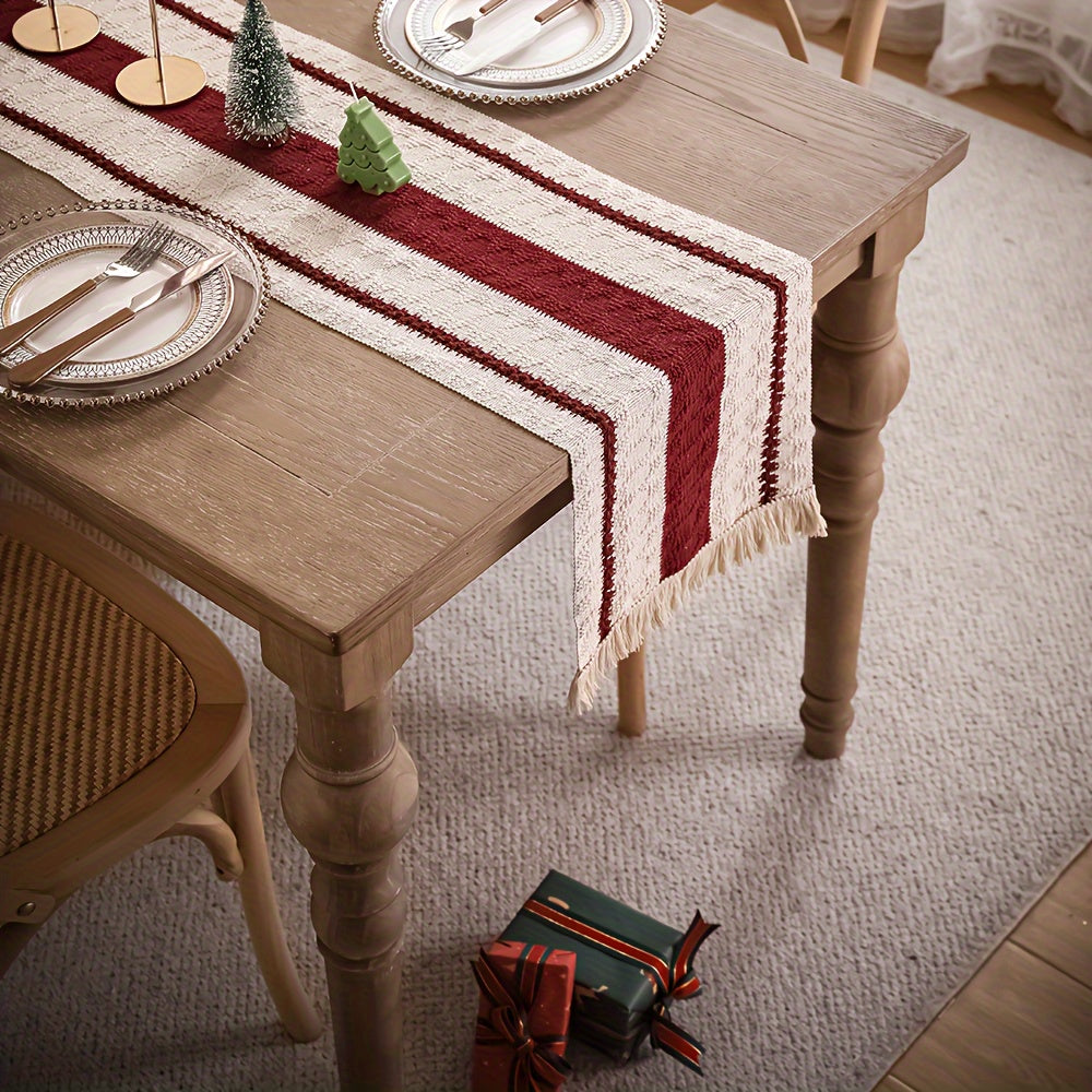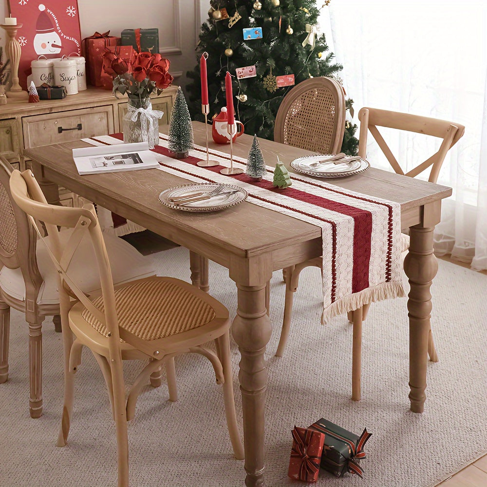 Este camino de mesa rústico en tonos rojo oscuro es la elección ideal para quienes buscan combinar elegancia y calidez en su hogar. Diseñado para celebraciones navideñas y uso diario.