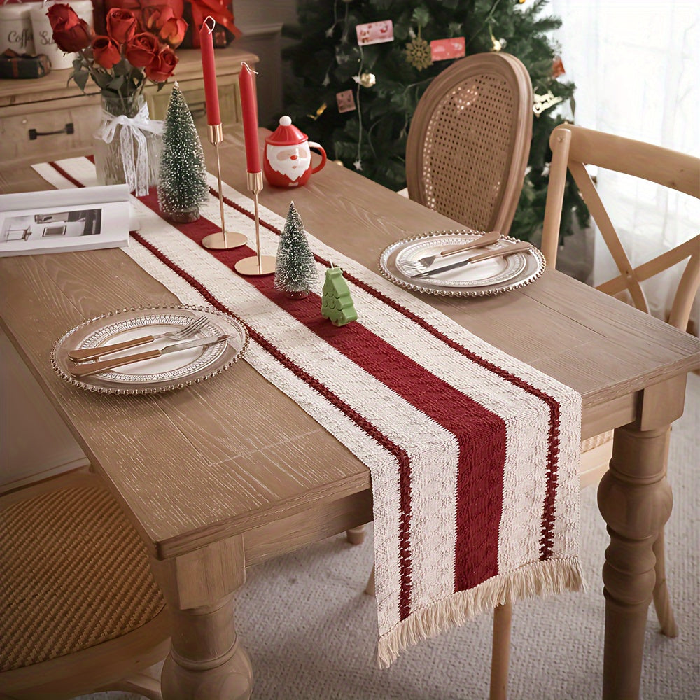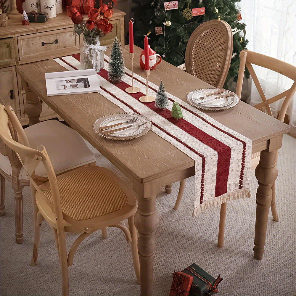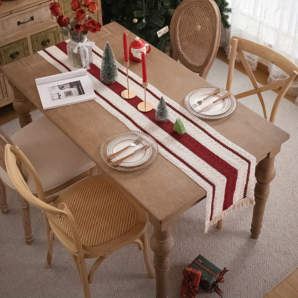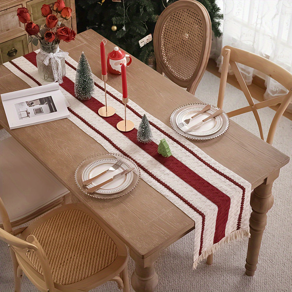Este camino de mesa rústico en tonos rojo oscuro es la elección ideal para quienes buscan combinar elegancia y calidez en su hogar. Diseñado para celebraciones navideñas y uso diario.
