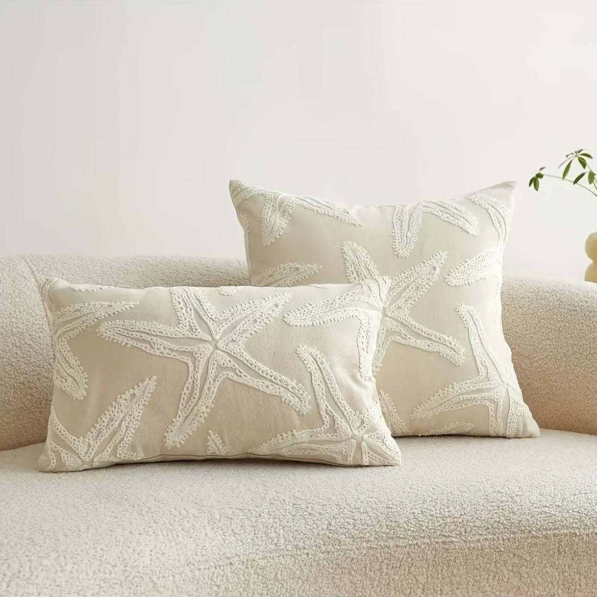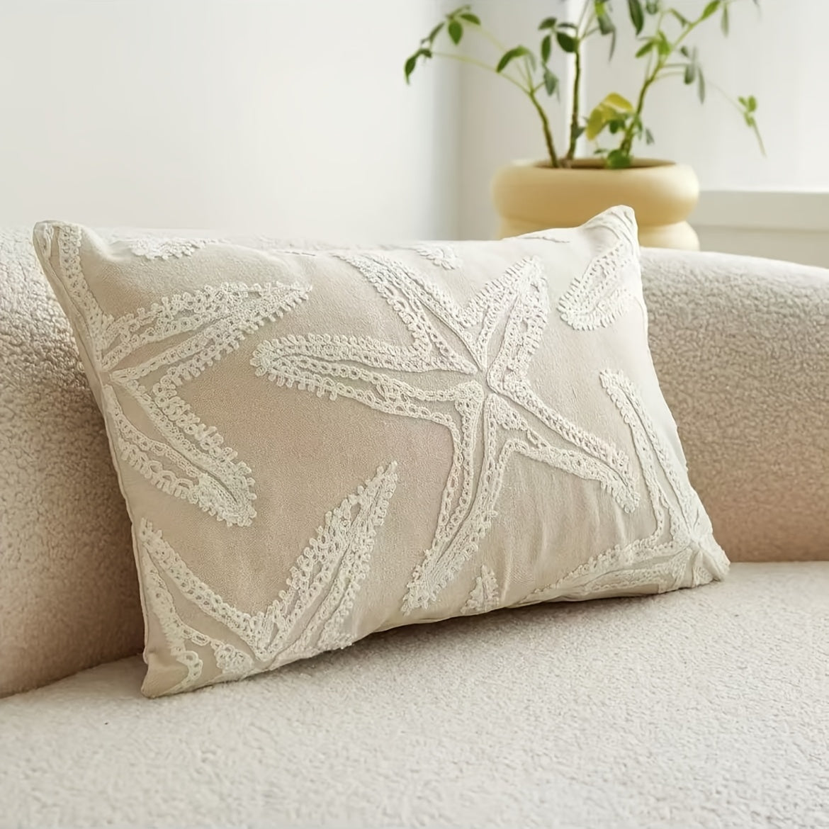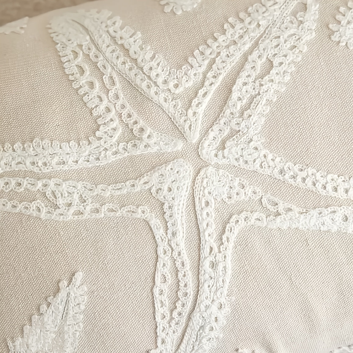 Transforma tu hogar con esta funda de cojín decorativa de estilo rústico. Su bordado de estrella de mar aporta un toque costero y elegante a cualquier espacio.