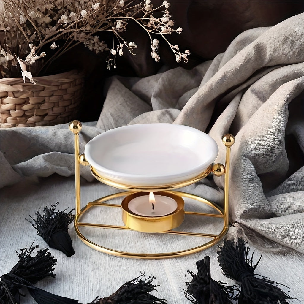 Portavelas de Cerámica y Metal para Decoración y Aromaterapia