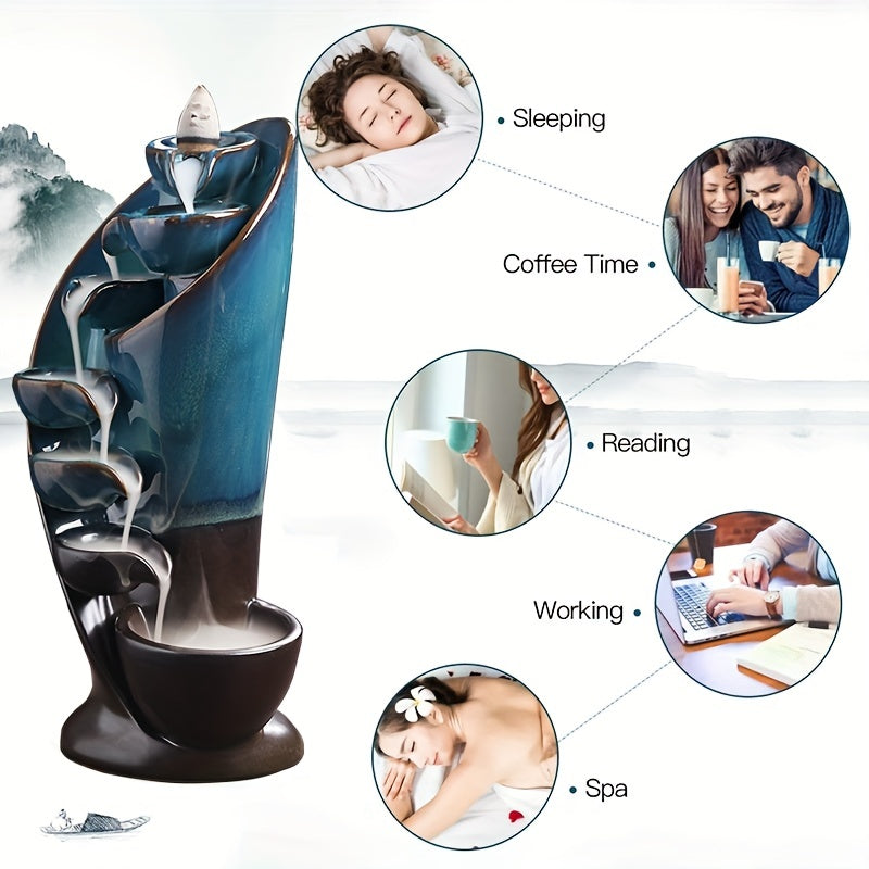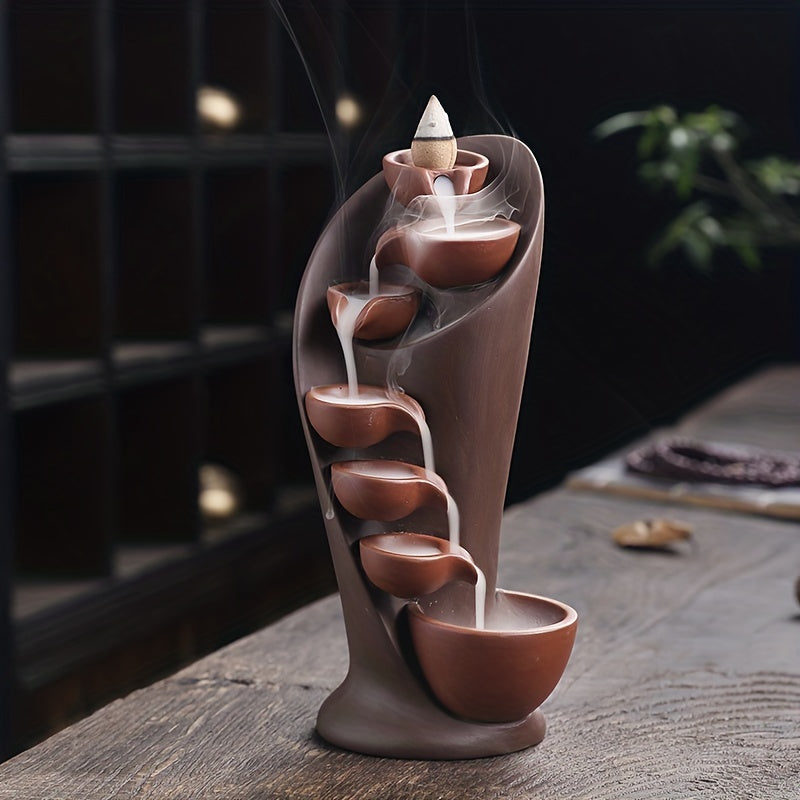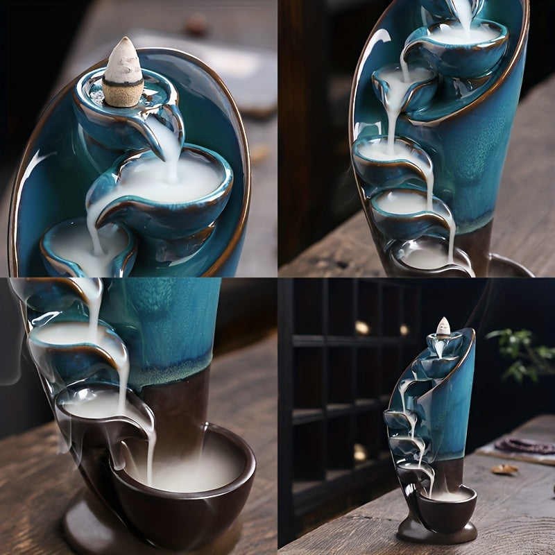 Descubre el quemador de incienso de cerámica que transformará tu espacio en un oasis de paz. Su diseño en cascada añade un toque de elegancia a cualquier ambiente.