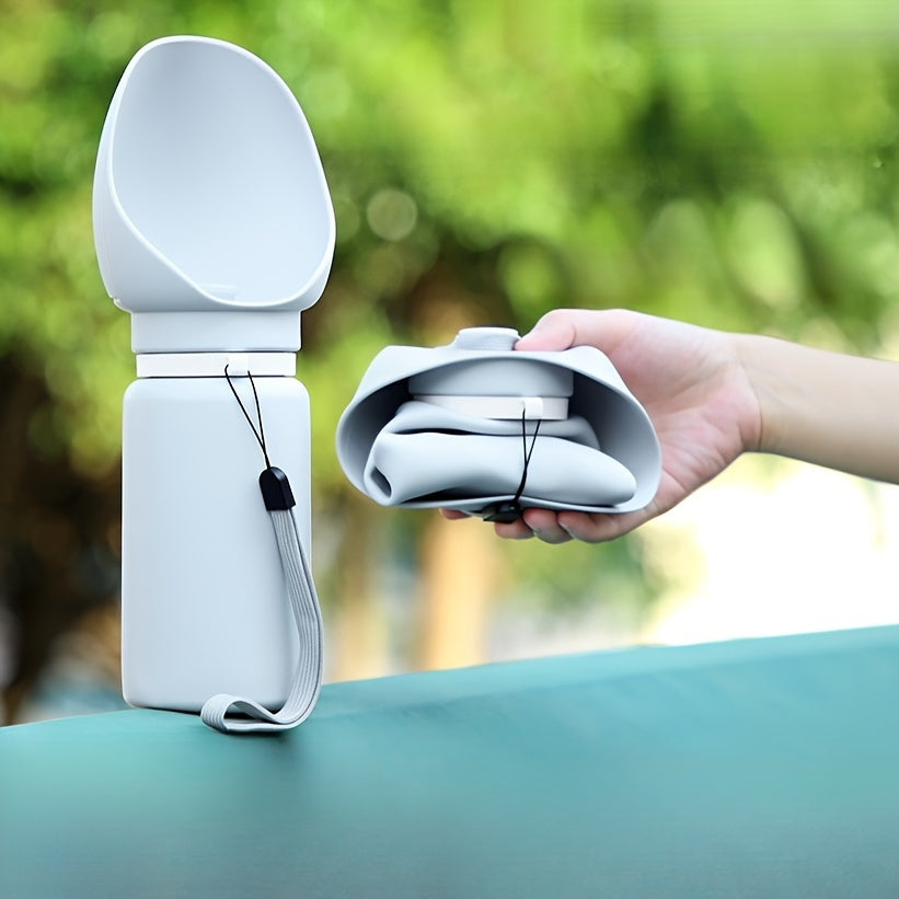 Botella de agua portátil de silicona, ideal para viajes con mascotas. Diseño plegable y práctico, perfecto para aventuras al aire libre.