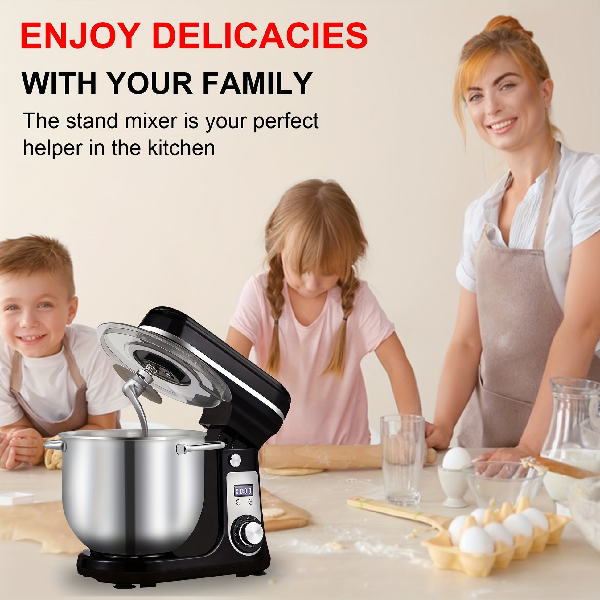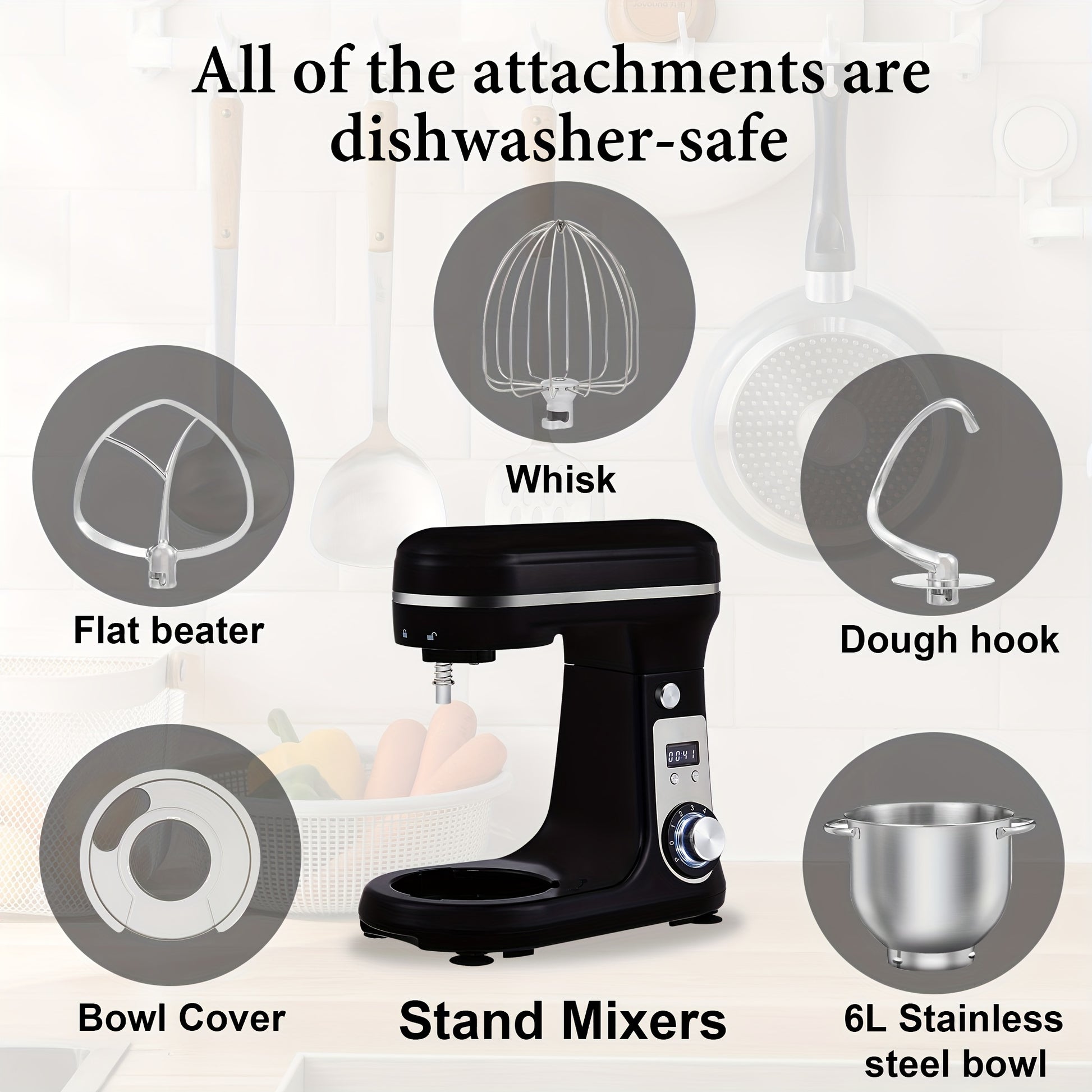 - Incluye batidor, gancho de amasar y mezclador plano.