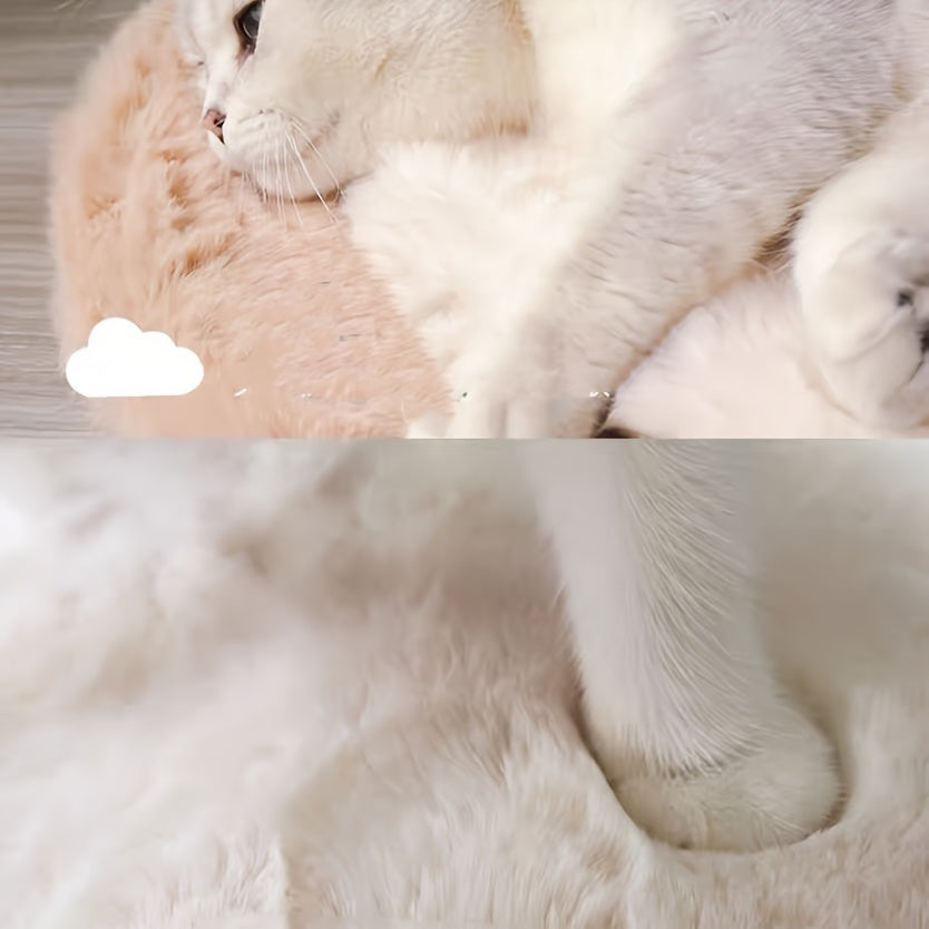 Cama Redonda de Piel Sintética para Mascotas - Beige o Blanca