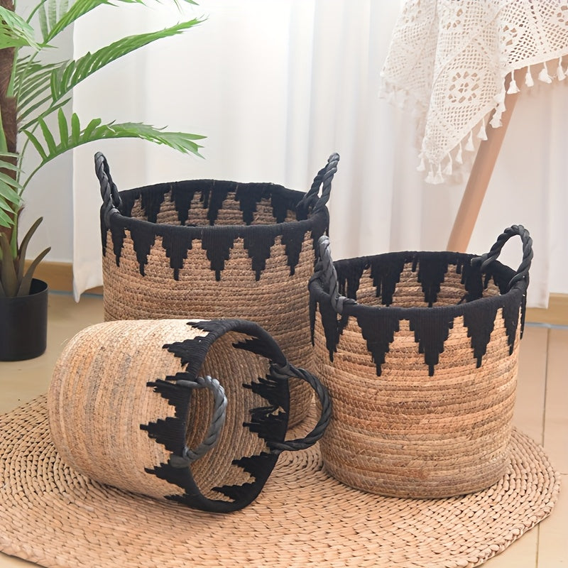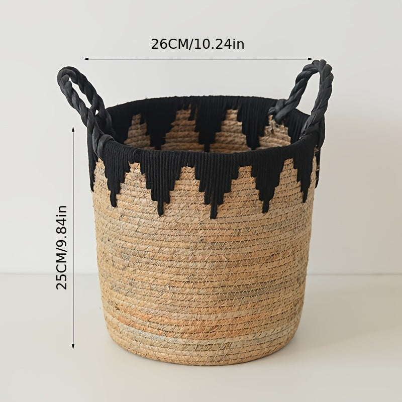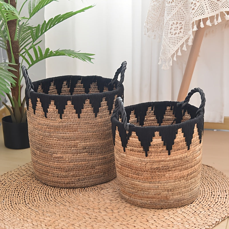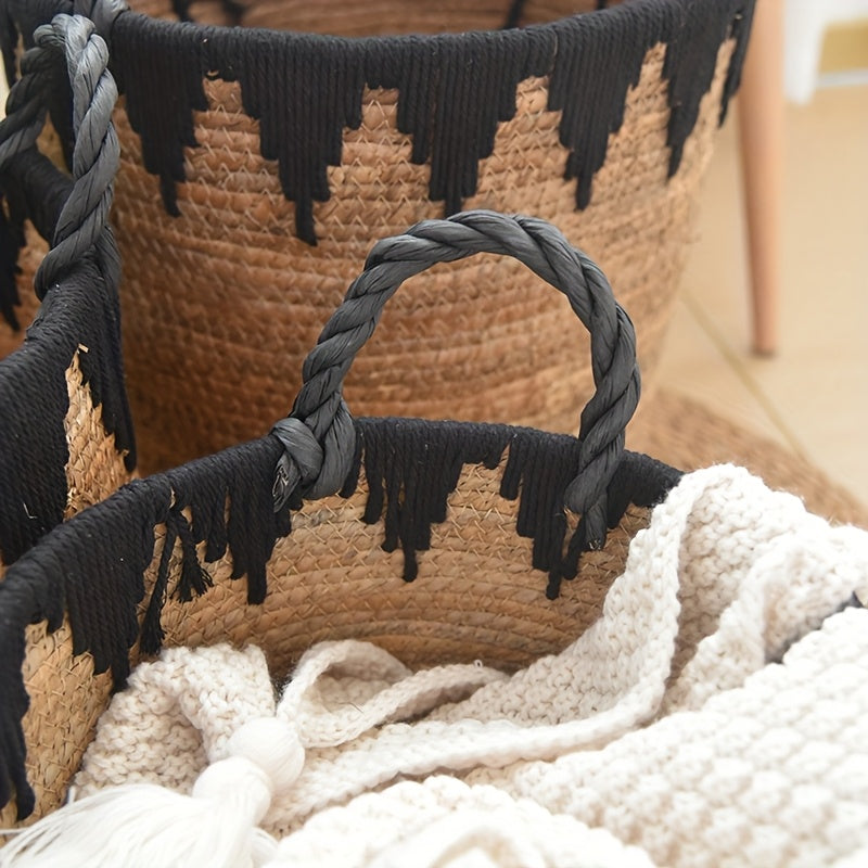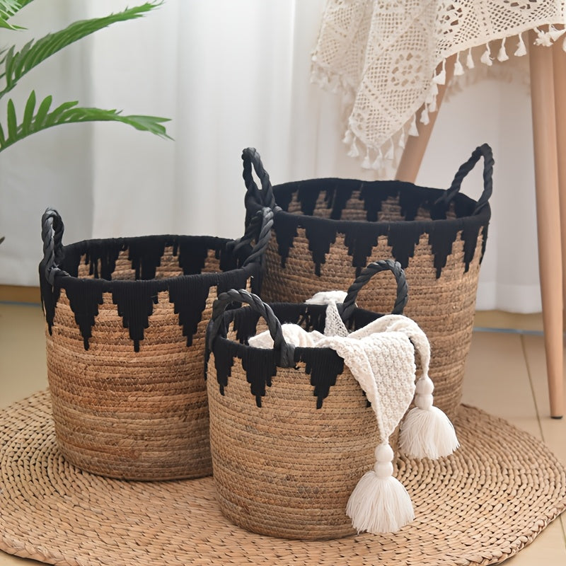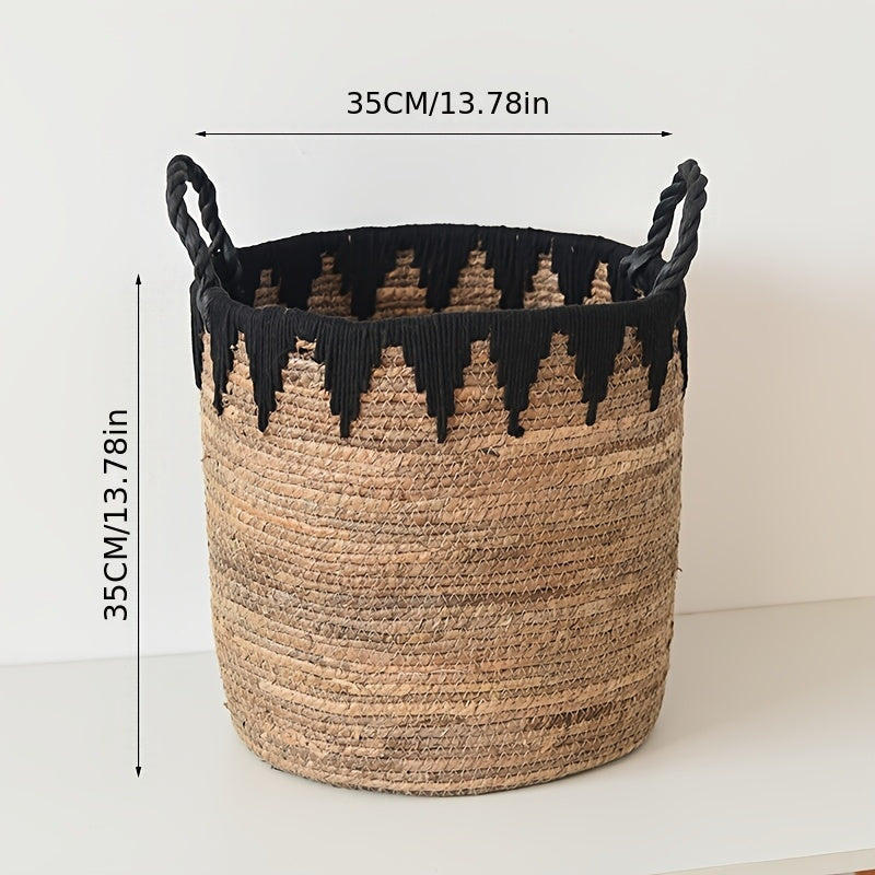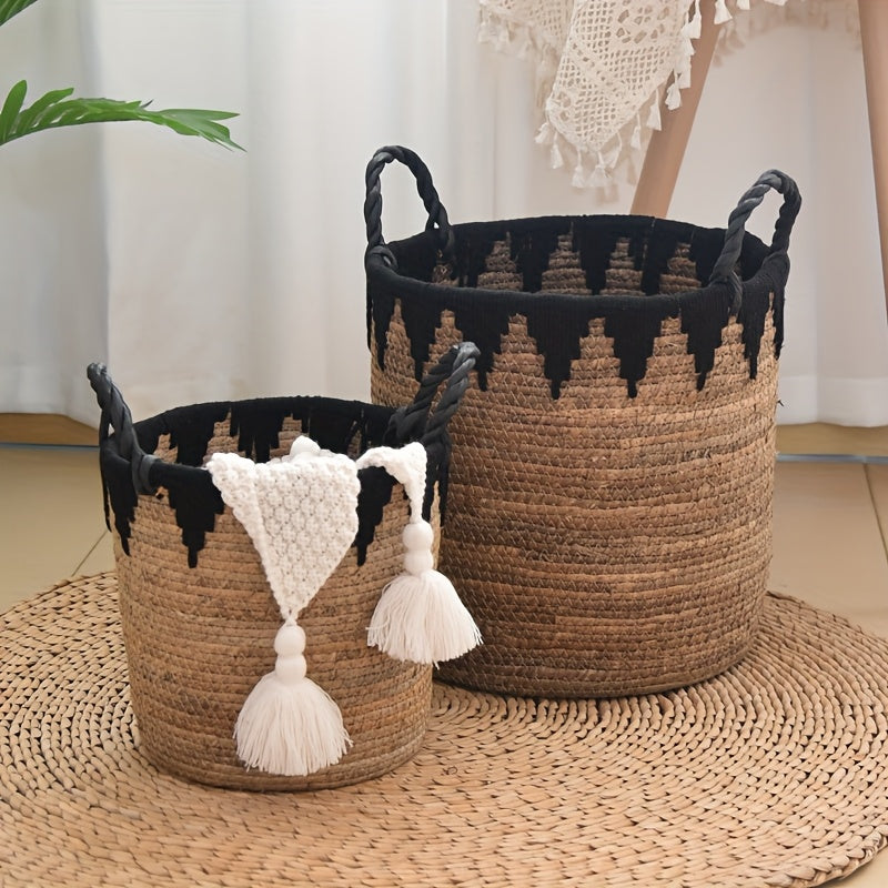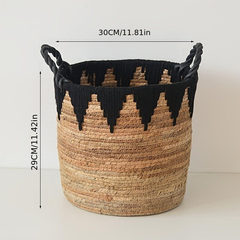 Transforma tu hogar con esta cesta de almacenaje de estilo bohemio. Hecha a mano, combina funcionalidad y diseño para cualquier espacio.