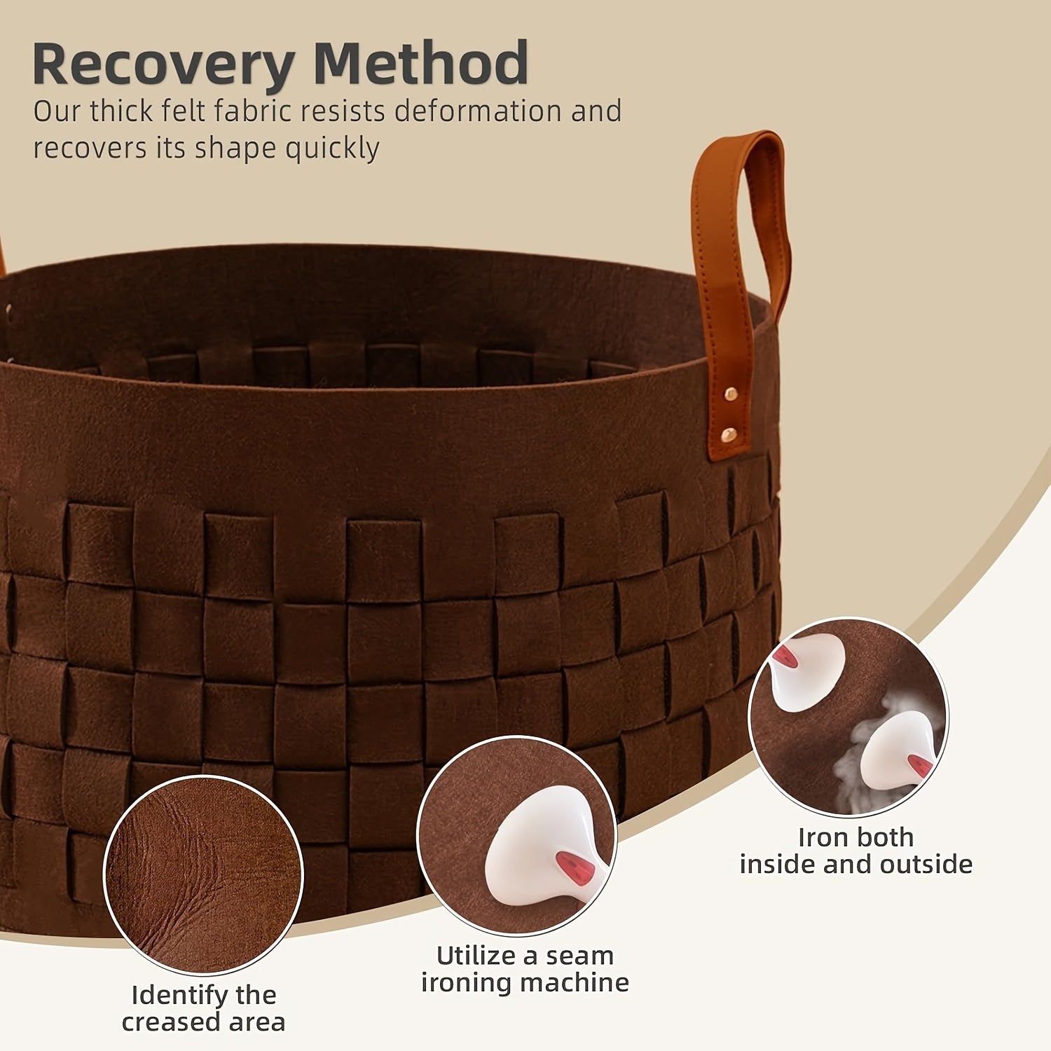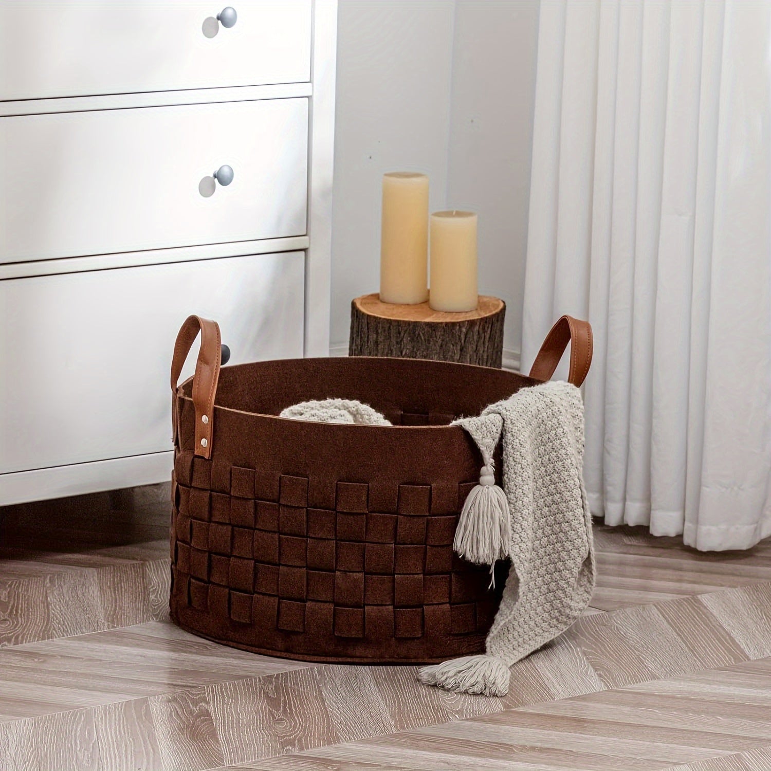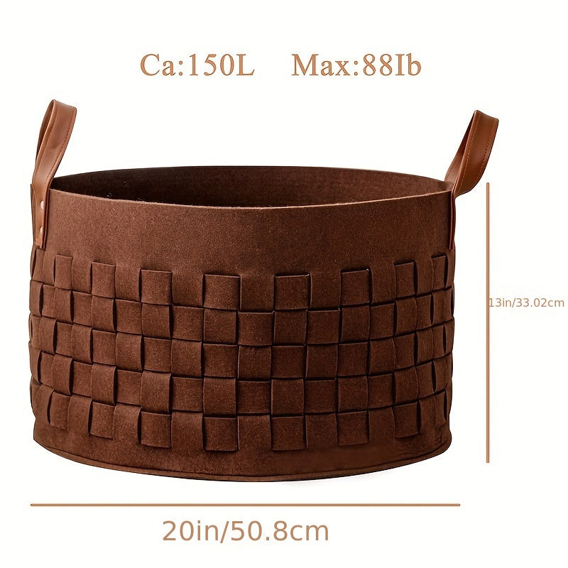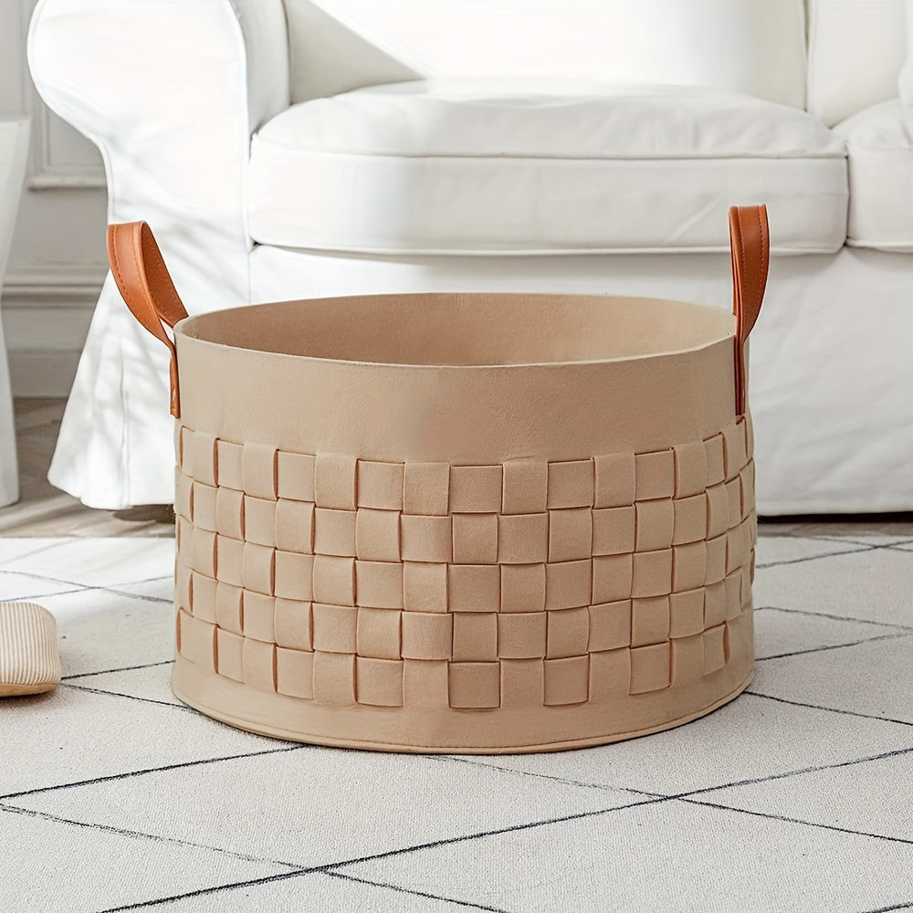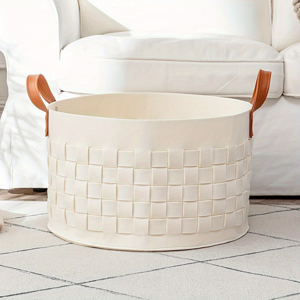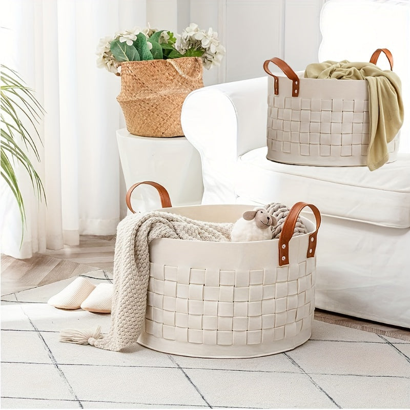 Cesto de Lavandería Grande de Fieltro con Asas de Piel Sintética
