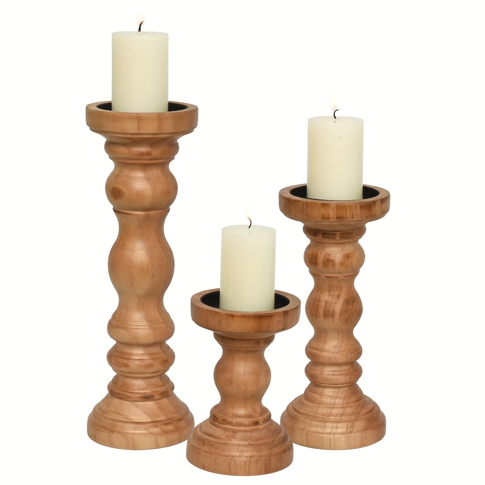 Conjunto de 3 Portavelas de Madera Estilo Rústico