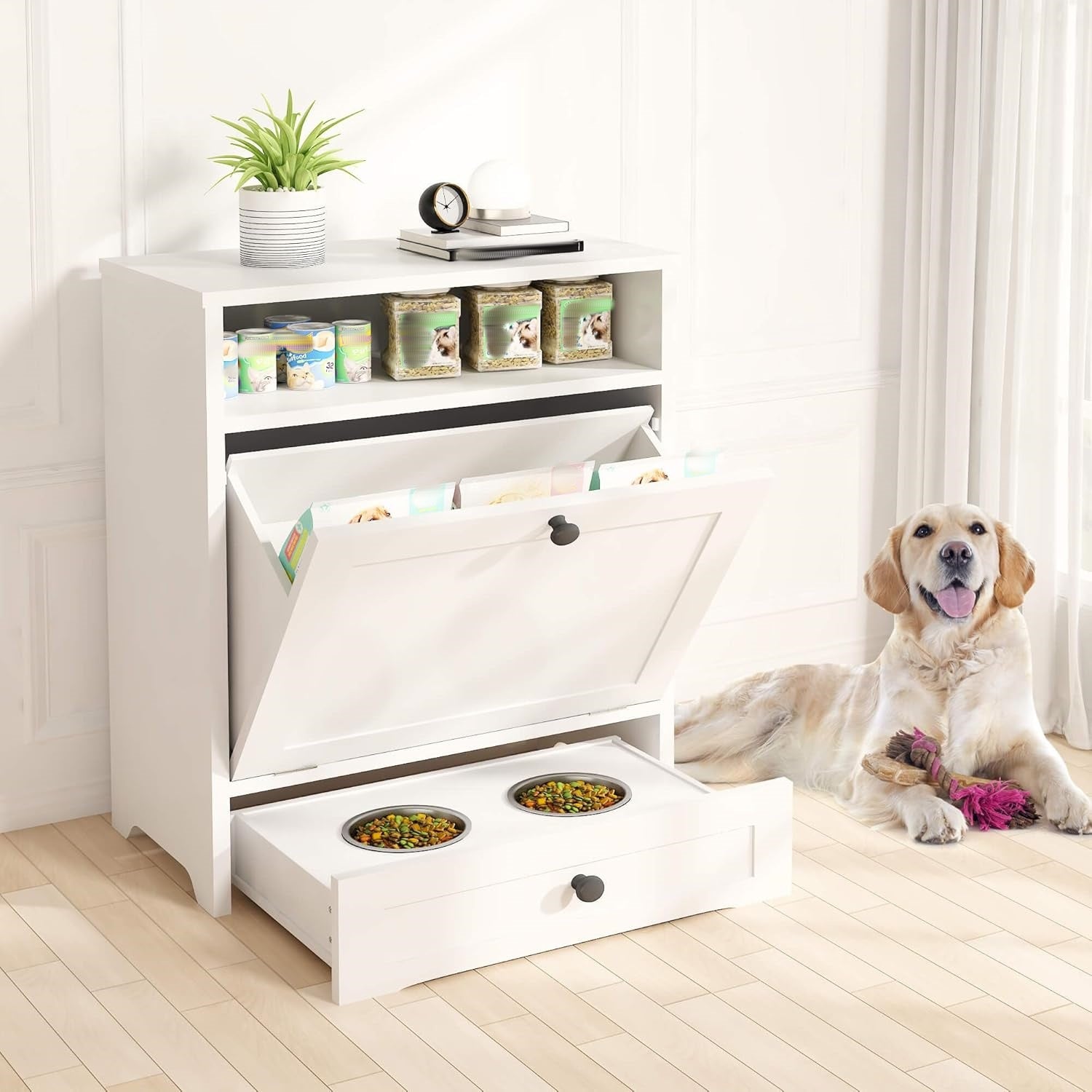 Optimiza el espacio y la salud de tus mascotas con esta estación de alimentación elevada y almacenamiento integrado.