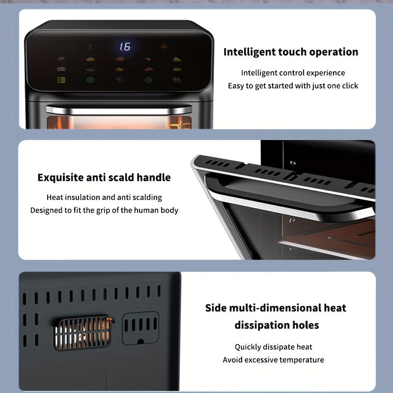 Freidora de Aire 10L BALASHOV, Horno Eléctrico Multifunción 18 Modos