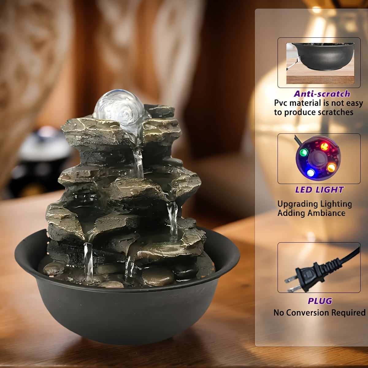 Coloca esta fuente en tu sala de estar, dormitorio u oficina para disfrutar de un ambiente sereno y un aire más fresco. Ideal para momentos de meditación o relajación.