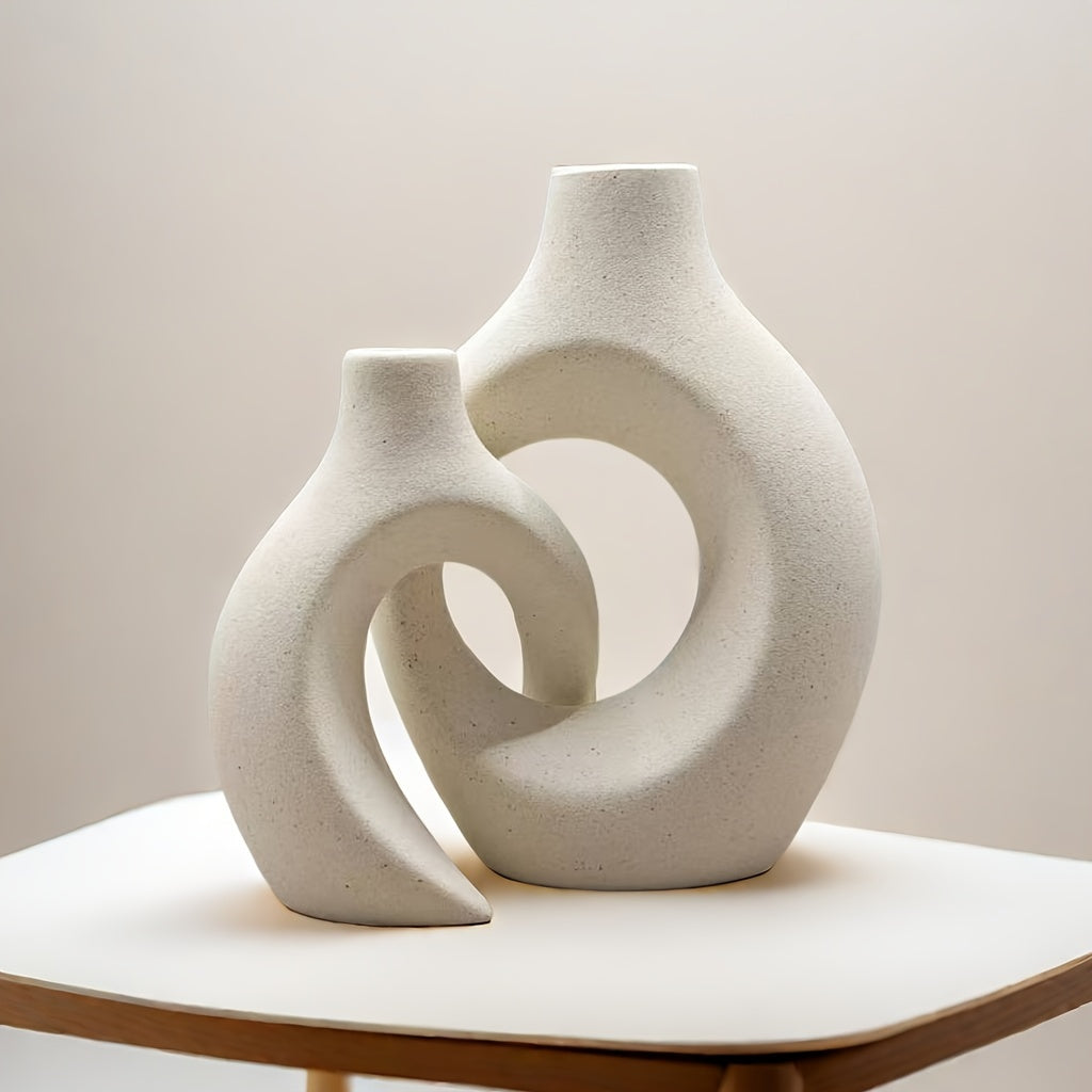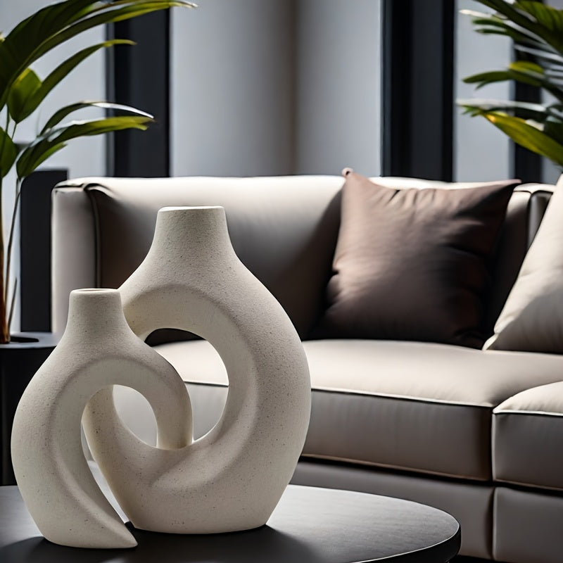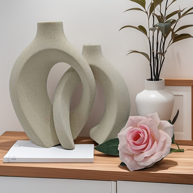 Este jarrón cerámico rústico es una pieza única que aportará un toque de sofisticación a cualquier espacio. Su diseño abstracto y forma ovalada lo hacen perfecto para cualquier estilo de decoración.