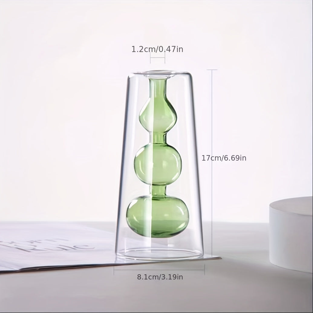 Jarrón de Vidrio Doble Estilo Nórdico Moderno para Aromaterapia y Flores