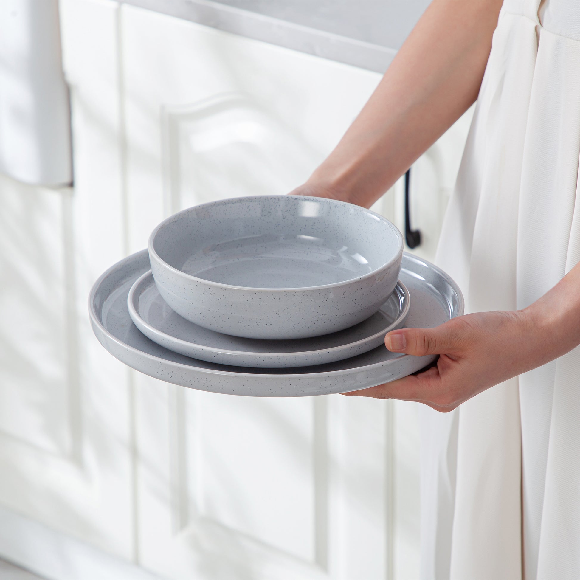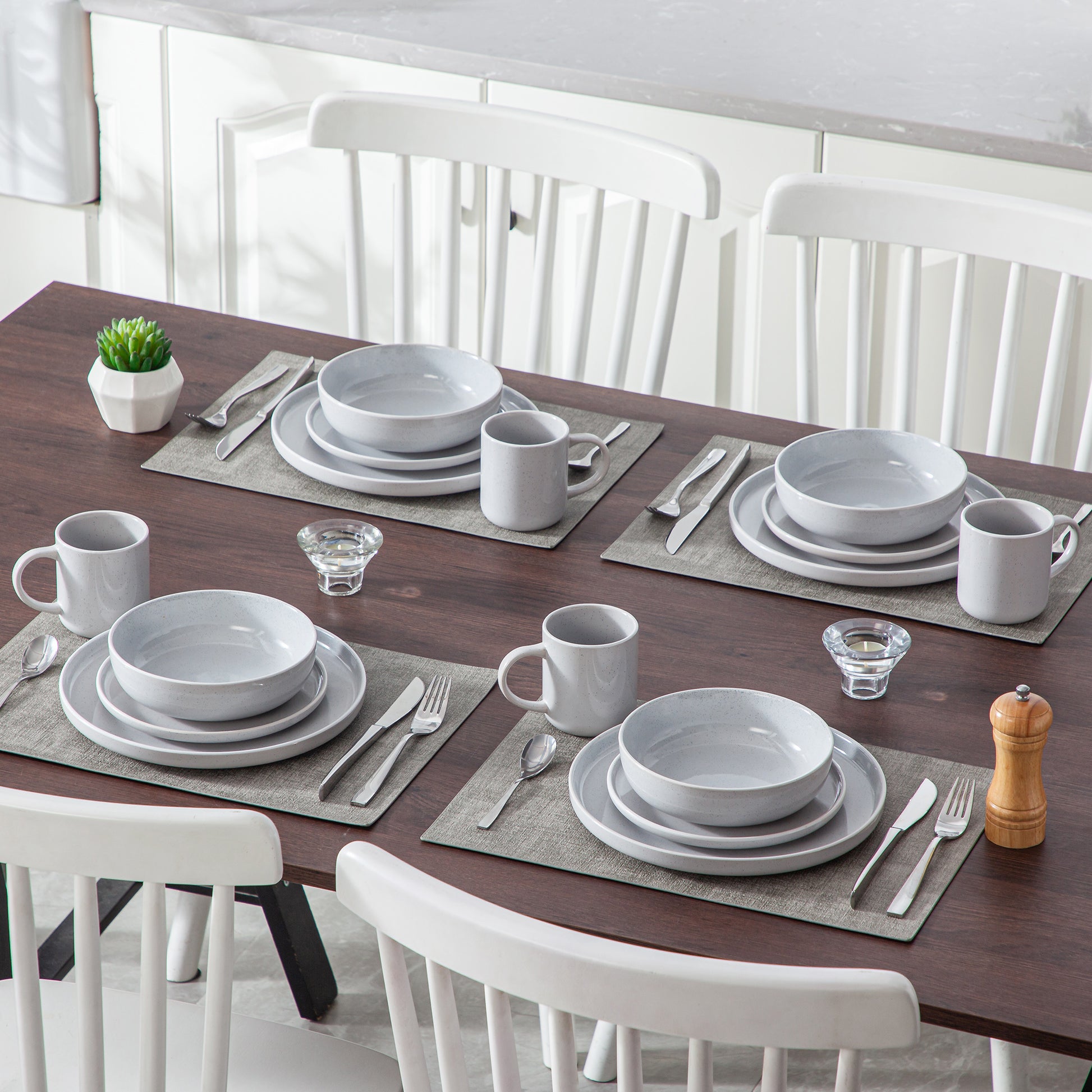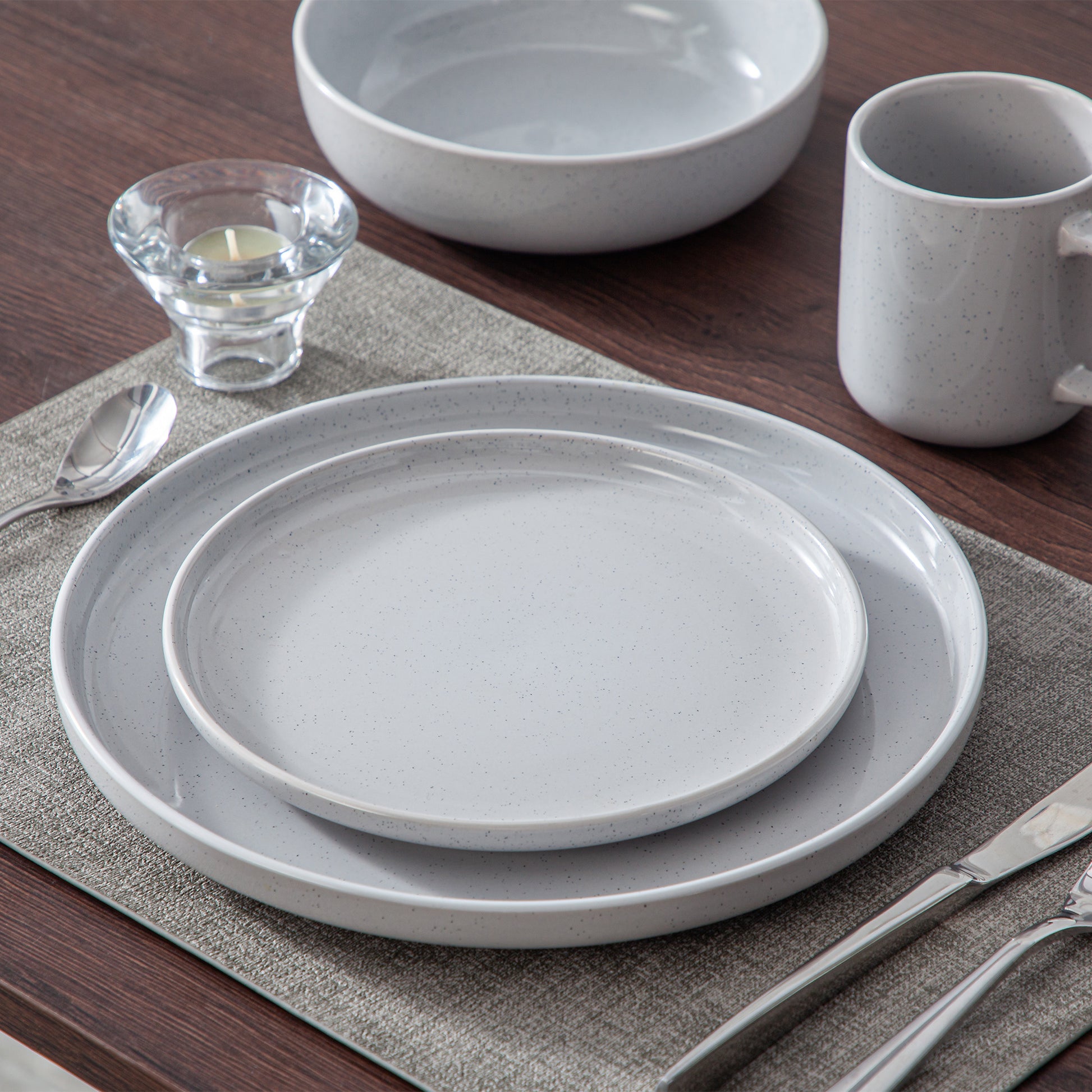 Transforma tu mesa con este elegante juego de vajilla de gres. Su diseño moderno y colores delicados aportan un toque de sofisticación a cualquier comida.