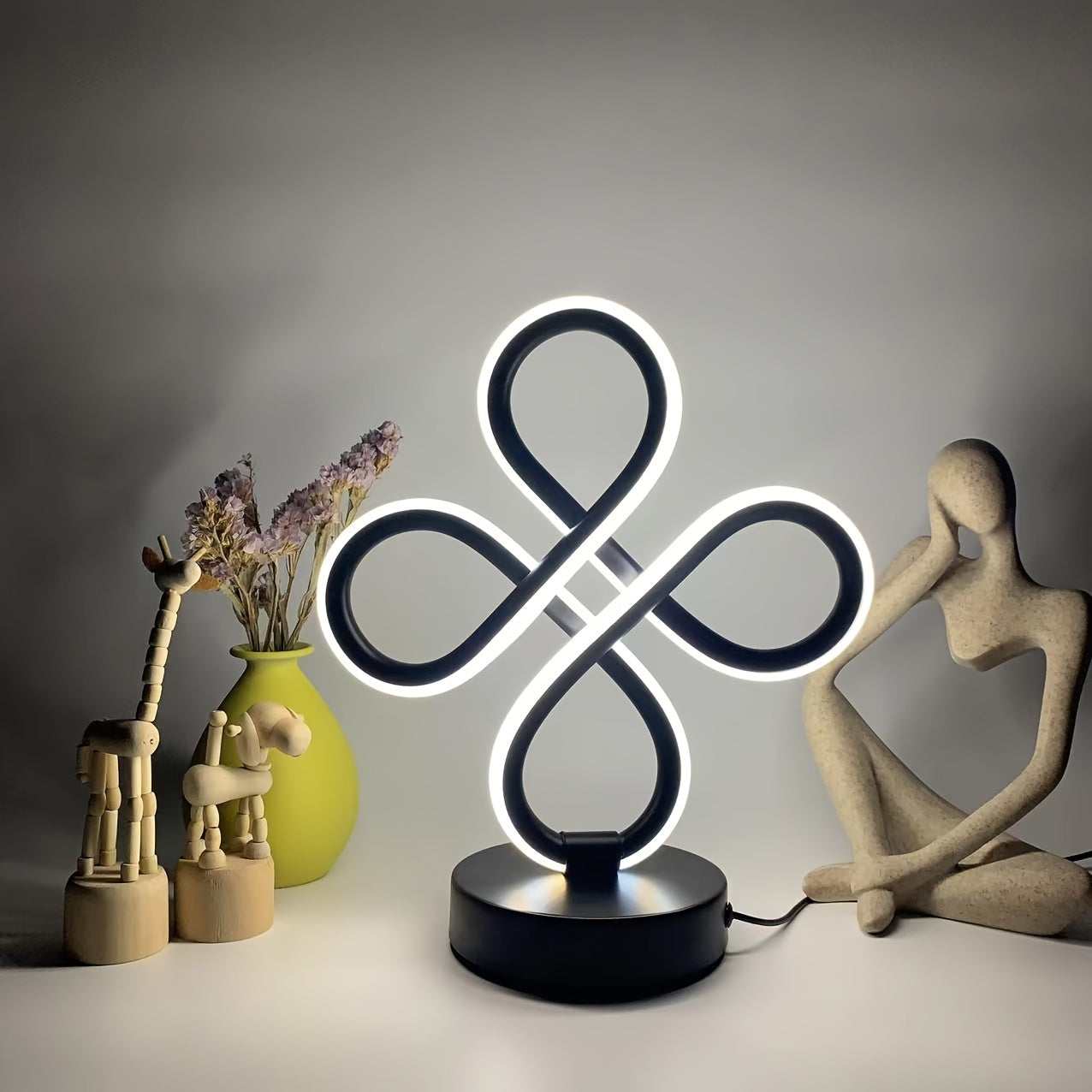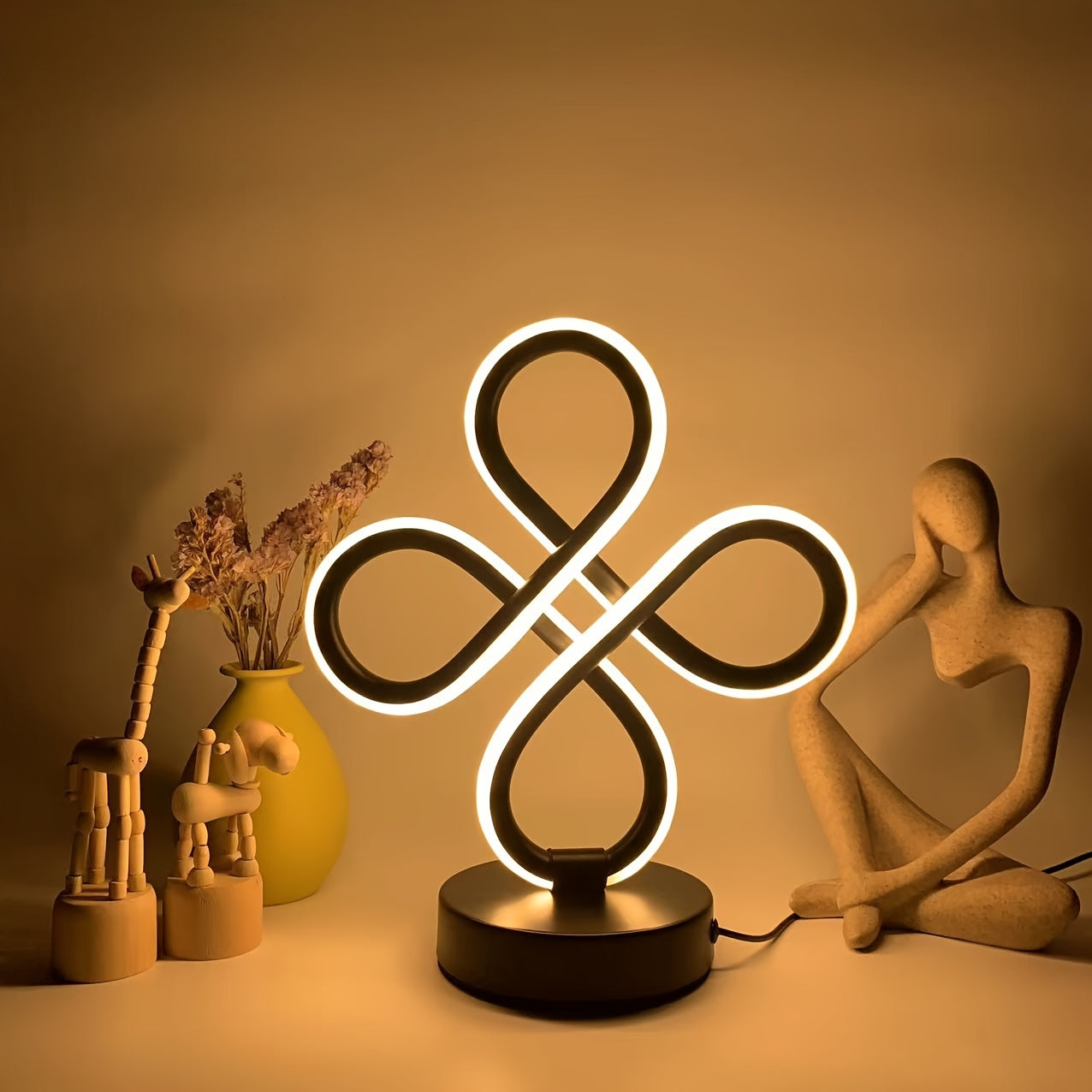 Descubre la elegancia de esta lámpara de mesa LED con diseño de nudo moderno. Perfecta para añadir un toque sofisticado a tu hogar, su iluminación regulable en tonos RGB se adapta a cualquier ambiente.