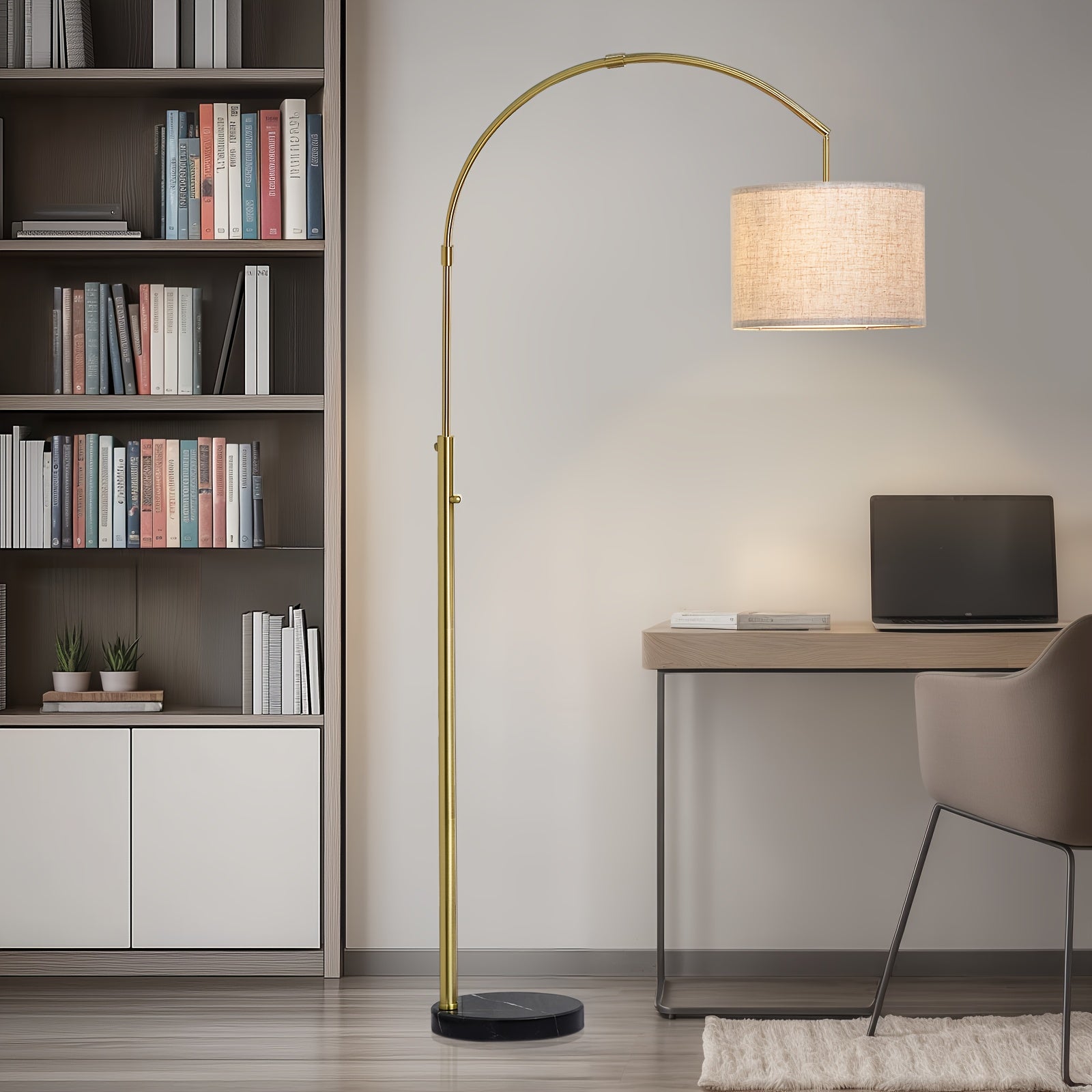 Lámpara de Pie con Arcos Giratorios y Pantallas de Lino