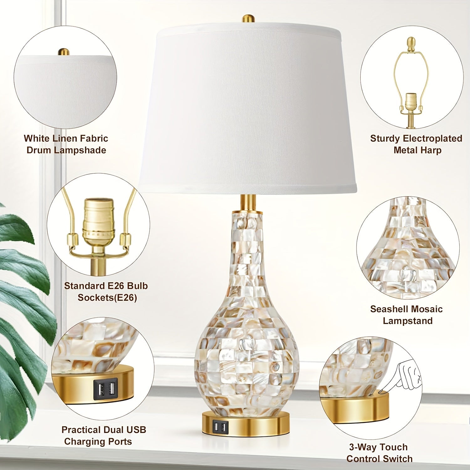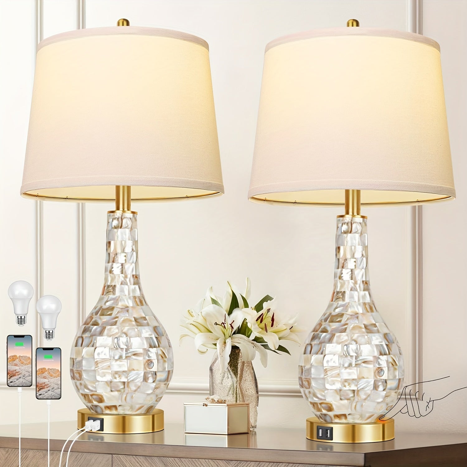Lámparas de Mesa Modernas con Control Táctil y Puertos USB, Set de 2