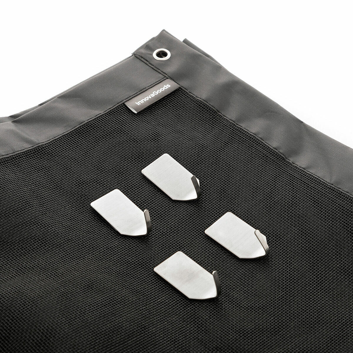 Fija los colgadores adhesivos en el marco de la puerta o pared y engancha la red mediante las anillas metálicas. Cuando no la necesites, desengancha y pliega para guardarla con facilidad. Ideal para hogares con mascotas que respetan límites visuales.