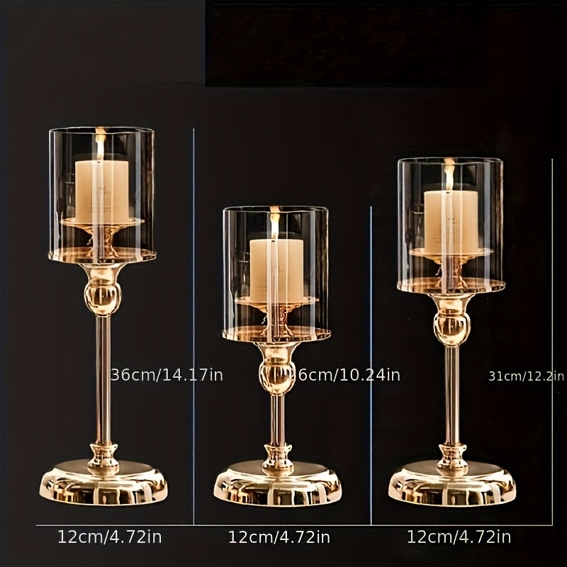 Set de 3 Elegantes Portavelas de Metal y Cristal - Decoración Romántica