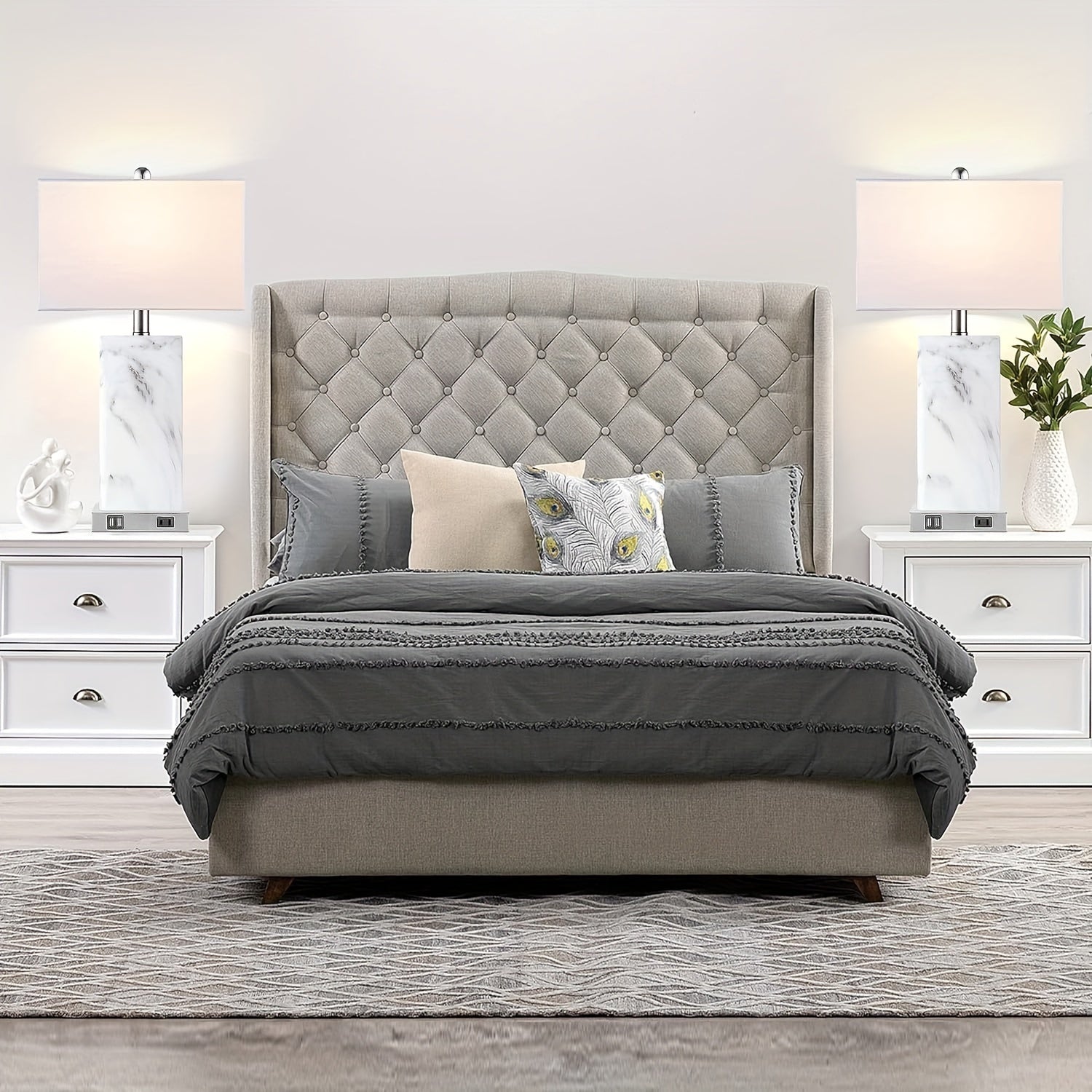 Coloca estas lámparas en tu dormitorio para una iluminación suave durante la noche o en tu sala de estar para crear un ambiente acogedor. Los puertos USB son perfectos para cargar tus dispositivos mientras descansas.