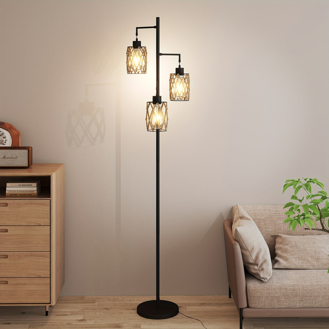 Lámpara de Pie Boho con Pantalla de Ratán Natural