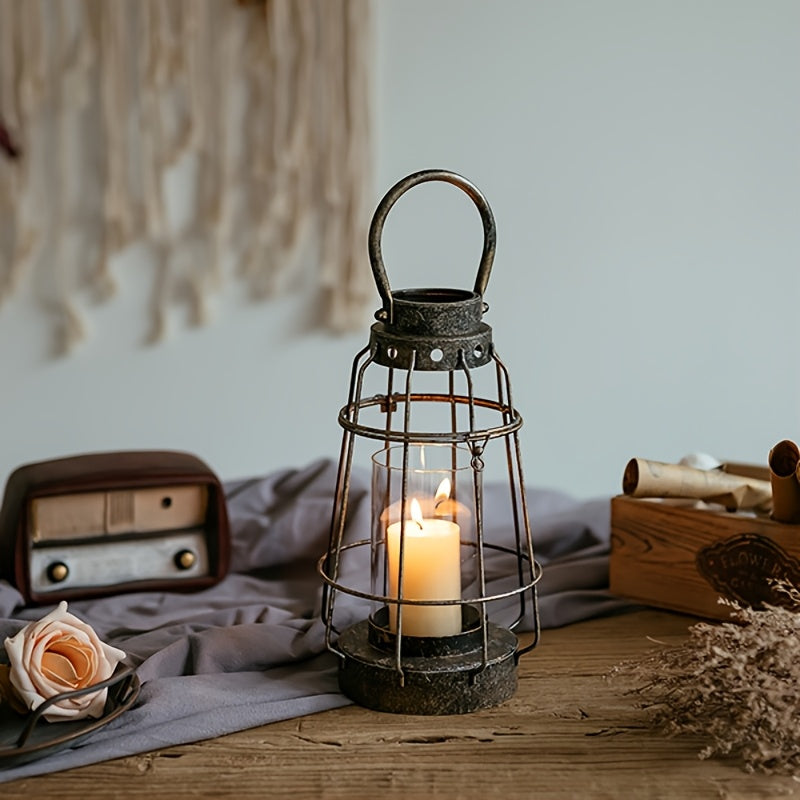 Farolillo Vintage de Hierro Forjado y Cristal con Asa