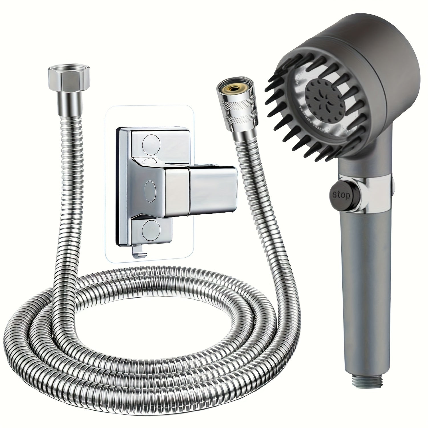 Descubre el cabezal de ducha de alta presión que transformará tu experiencia diaria. Con un diseño moderno negro y plata, es el complemento perfecto para cualquier baño.