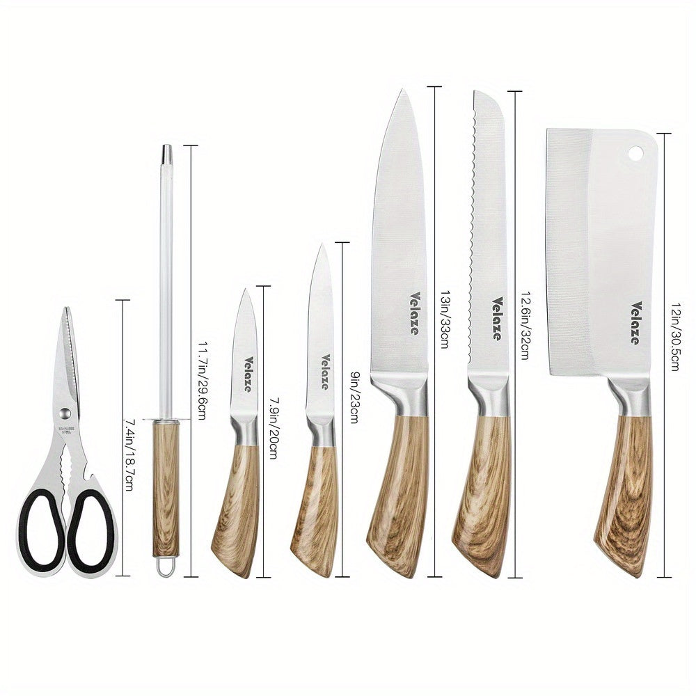 - Juego de 8 piezas, incluye cuchillos para chef, pan, y más.