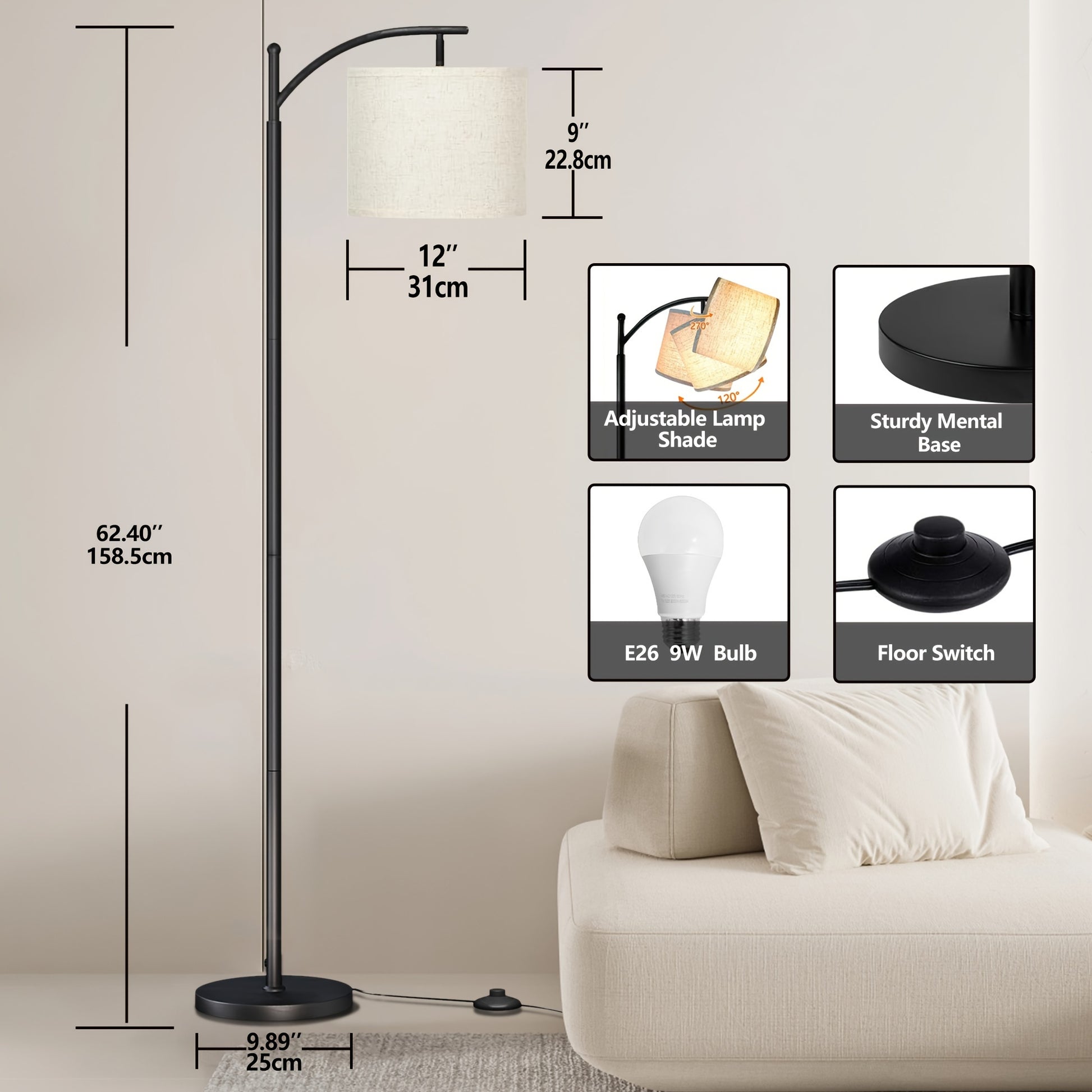 Lámpara de Pie LED con Pantalla Beige para Salón y Dormitorio - Negro